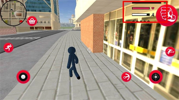 3、随性动作互动:界面的技能按钮可用于释放攻击与特殊动作,既能与城市里的物品进行互动破坏,也能不受任务约束地自由施展动作。