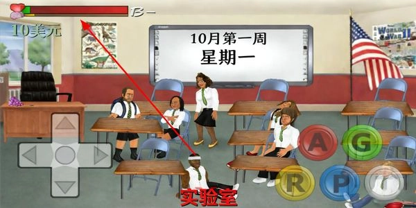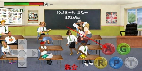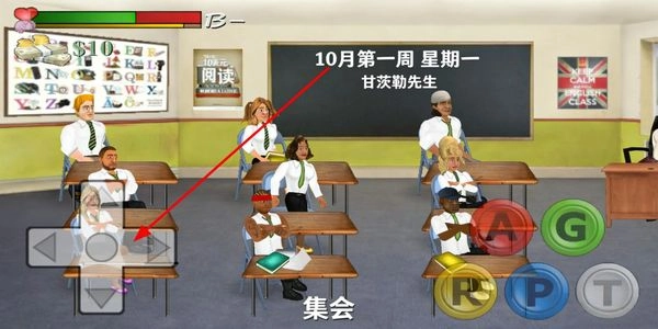 2、在教室场景里,借助移动按钮来操控角色的位置,等调整到合适区域后,就能触发和其他角色的互动行为。