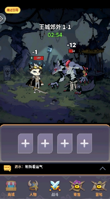 2、进入游戏开启第一关的挑战,点击下方的角色来配备装备以提升攻击力。