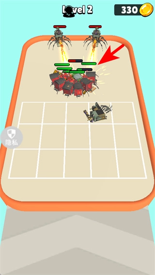 1、进入Level2关卡后,通过红色箭头指向的左右方向键,操控蜘蛛角色在路径上左右移动,调整位置以靠近目标。