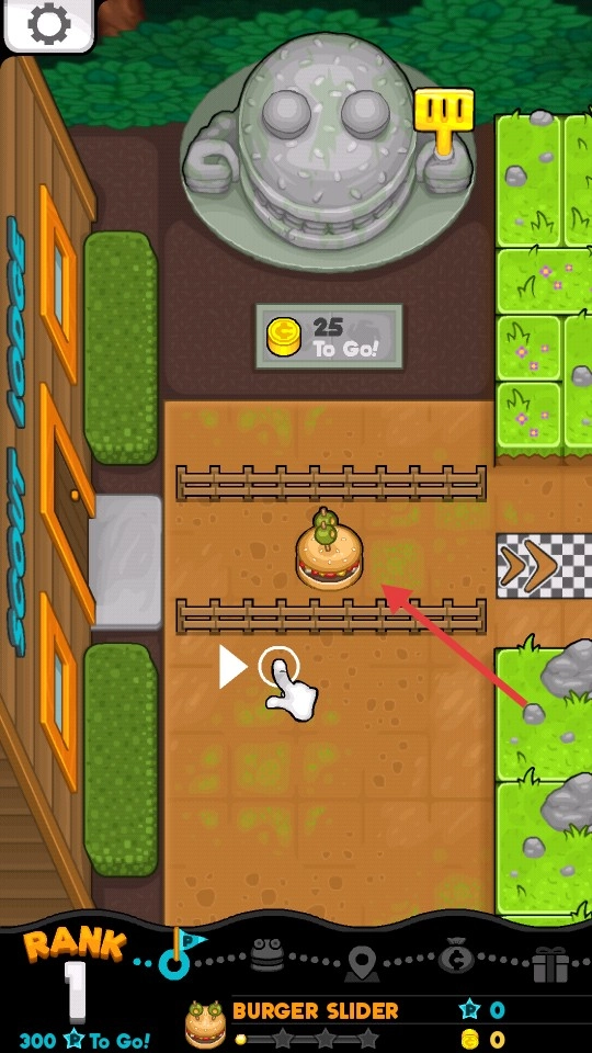 2、在关卡里,你要操控汉堡角色顺着路径移动,收集金币与蓝色星星,以此获取资源。