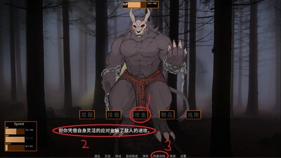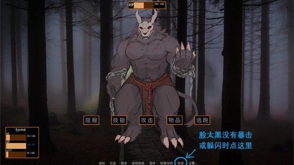 第二步: 在攻击过程中,当出现暴击或躲闪的情况时,点击快速存档,之后继续进行攻击操作,直到角色的血量降低到30点以下。