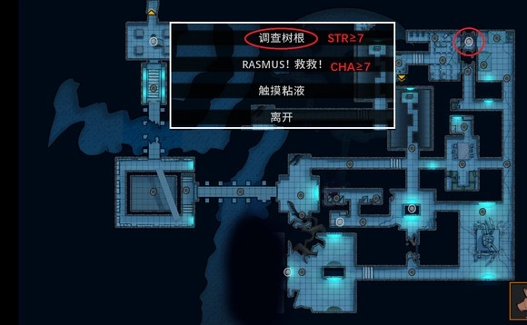 1) 在雪山机械地下城的囚笼室左上角剧情点,若还未通过树根房间处剧情点的检定,此时选择“尝试强行砸开门”。