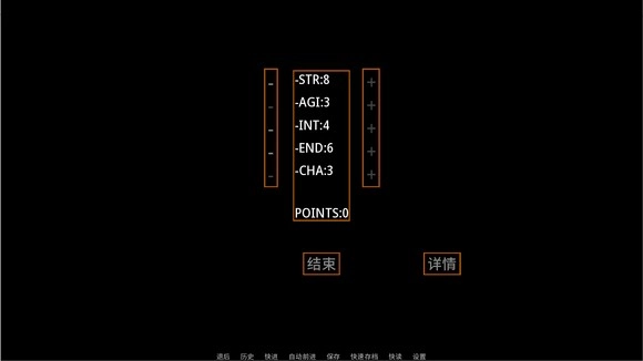 STR(力量):8 AGI(敏捷):3 END(耐力):6 INT(智力):4 CHA(魅力):3