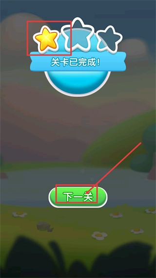 4、达成关卡目标后显示【关卡已完成!】,获得对应星星评级,点击【下一关】按钮即可进入后续关卡继续挑战。