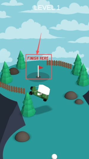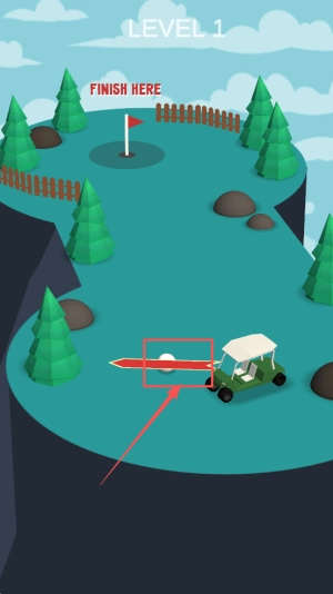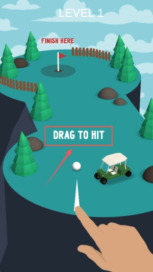 简约风格的高尔夫益智游戏。玩家需通过点击屏幕控制挥杆,精准把握击球方向与力度,让小球顺利进洞。游戏操作简单易上手,提供多种竞技模式与角色解锁,鼓励挑战更多击球次数,适合喜爱轻量运动与精准操作的玩家体验。1、进入游戏:首先打开游戏主界面,点击LEVEL1进入第一关,看到“FINISH HERE”终点标识。