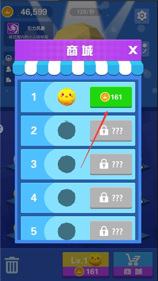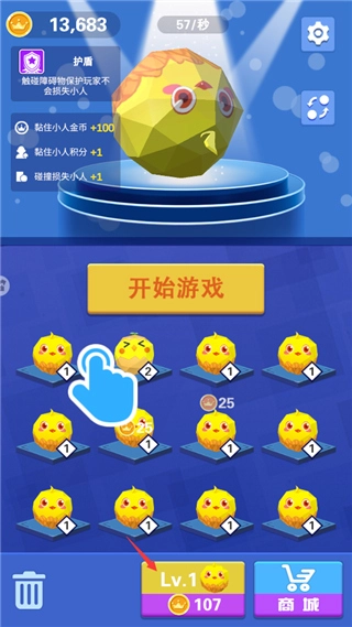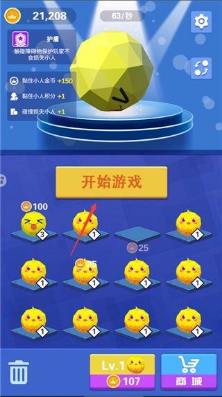 点击移动的球球获取升级后的球球,能帮你得到更多金币。
