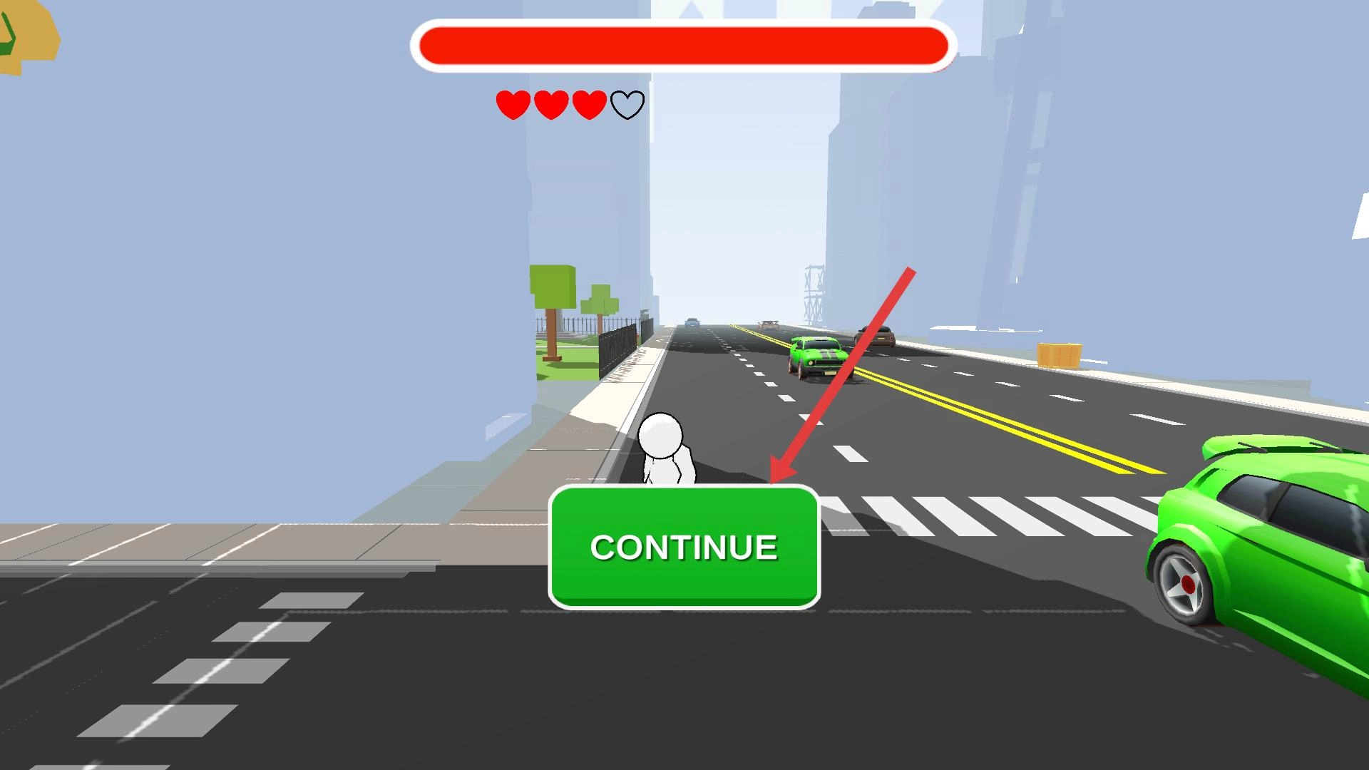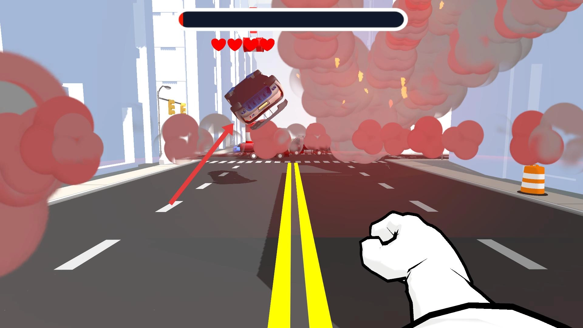 安装好这款游戏后,点击进入游戏界面,操控角色置身于道路场景之中,借助拳头将车辆击飞,以此推动游戏流程的进展。