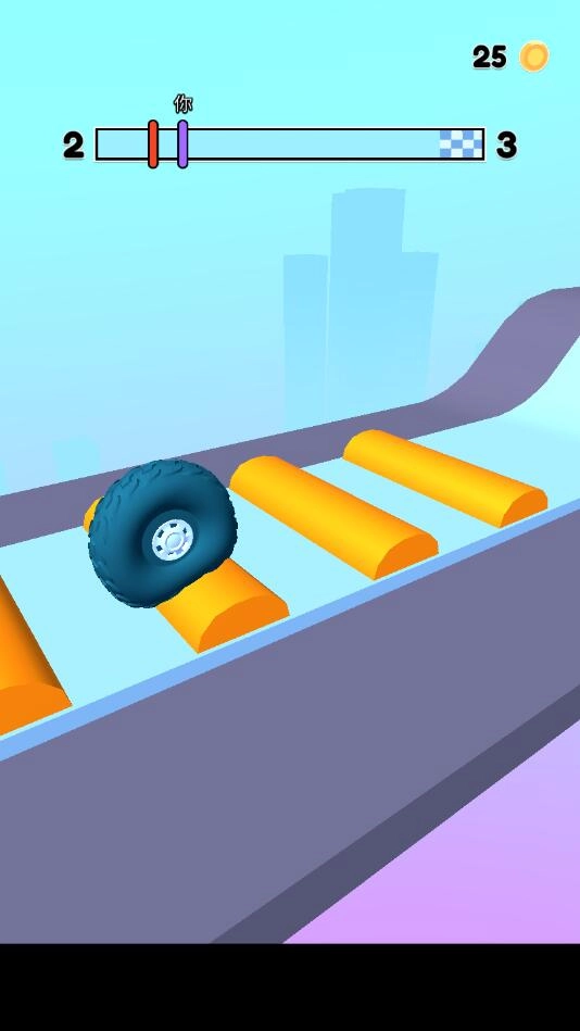 当您回到关卡后方时,加入并操控游戏里的轮子在不同轨道上行驶,难度会变得越来越大。