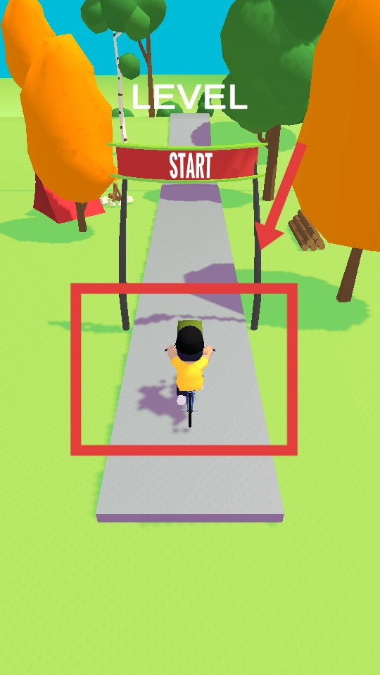 进入游戏关卡后,你会看到标有START的起点位置,角色正骑着自行车停在那里,只需点击屏幕,就能让角色沿着跑道开始骑行。