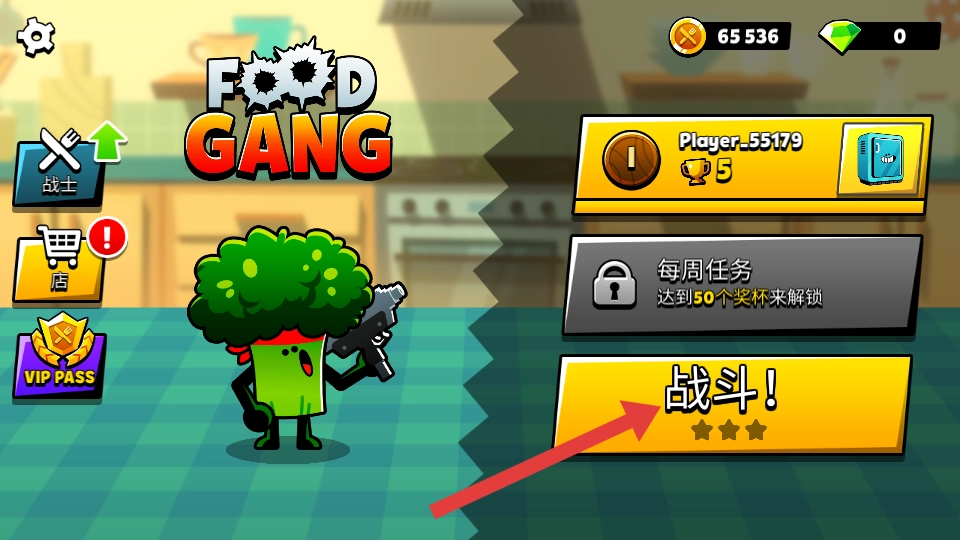 1、进入游戏后点击【战斗!】按钮,开启对战模式,积累奖杯可解锁每周任务等更多玩法。