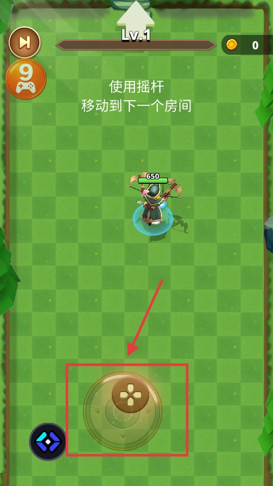 1、使用【屏幕底部】的【摇杆】操控角色移动,按提示前往【下一个房间】开启新区域探索。