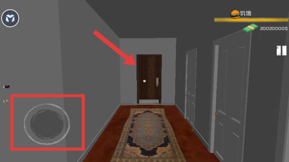 2、跟随【红色箭头指引】,点击【Door】交互按钮,完成开门操作进入下一场景。