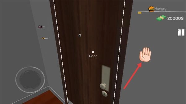 3、遇到门时点击手掌图标开门,出门去探索外界,寻找经营网吧的资源或机会。