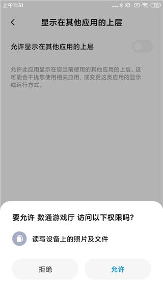 勾选允许显示在其他应用的上层;