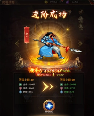 其次就是提升武将等级,这个过程相对轻松,只需消耗武将经验和铜币就行。武将还能进行进阶,进阶时要用到武将进阶丹,而且等级越高,后续进阶所需的进阶丹数量也会越多。需要注意的是,武将等级是可以超过角色等级的,其最高等级能达到1000级呢。提升武将等级不仅能增加武将的生命、攻击、防御这三维属性,还可以增强武将的综合能力。