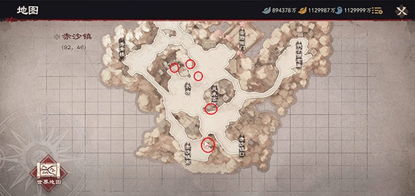 赤沙镇宝箱的具体位置如下:坐标(85,100)、(98,77)、(68,110)、(78,113)、(92,46)。