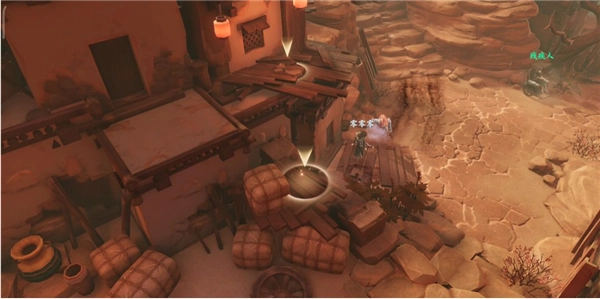 击败大蝎子后,按照线索指引前往坐标(107,107)处。主动找到那位面露愁容的工匠,选择协助他。在与工匠沟通了解情况后,得知他的兄弟老二和货物都失踪了。我暗自思索,这么大的物件凭空消失不可能毫无痕迹,只要仔细观察就能发现地面上的车轮印记。顺着这些车轮印前行,就能到达图中所示的位置。