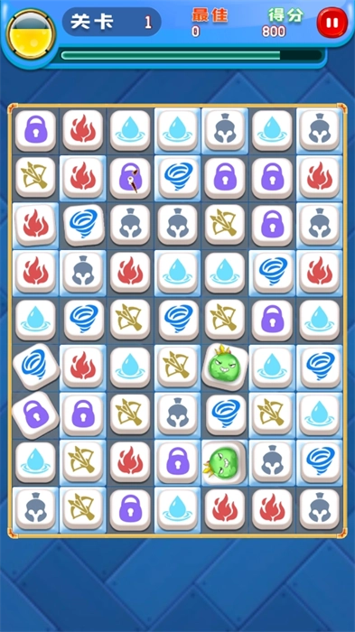 2、把相同的图案连接到一起,可以自动消除,把五个及五个以上形成新的技能。