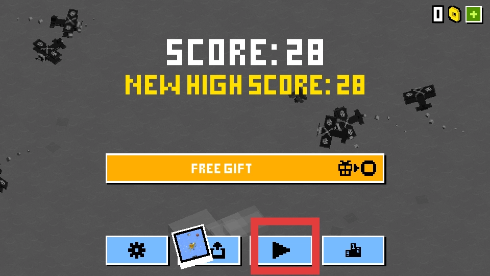 当玩家的飞机被敌方击中或者因碰撞坠毁时,游戏便会结束,此时会进入结算界面展示玩家的得分,玩家可通过点击对应按钮重新开启游戏,以挑战更高的分数。