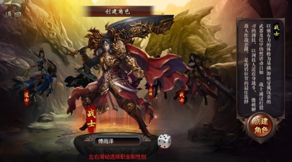 左右滑动可以选择您将要创建的角色职业和性别。
