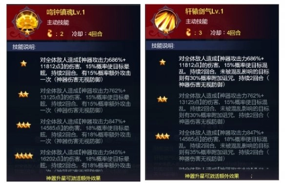 2、这四件神器在战场上能够对敌方造成一定程度的伤害,同时还会附带一定的控制效果。
