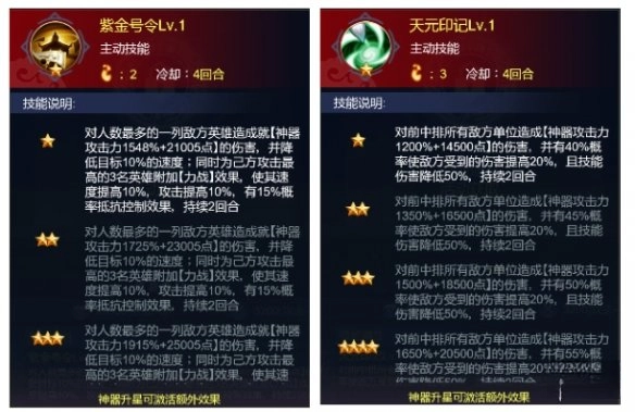 3、因此在规划神器装备的顺序时,要把增伤类或控制类的神器放在优先位置,之后再搭配辅助型神器。