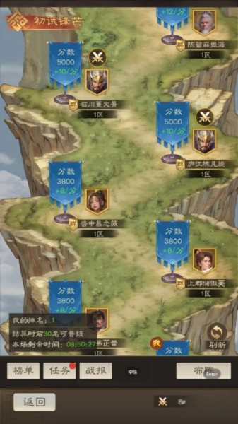2、在战斗进行期间,你能够随时查看实时更新的排行榜,最终积分位列前三十的将领将取得晋级的资格。