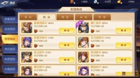 确定主力阵容后,可借助上述商店收集武将碎片,还能在军团系统里发起碎片求援