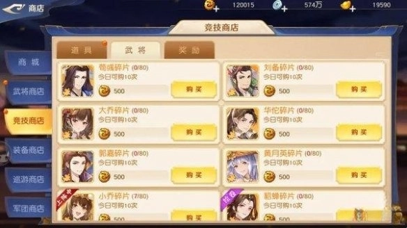 (3)竞技场荣誉商店(治疗系武将主要获取渠道)