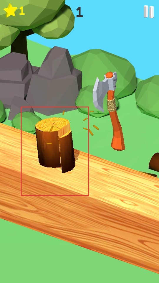 点击屏幕来操控斧头的挥动,瞄准那些滚动着的原木,在原木从斧头下方经过的瞬间精准劈下,把原木砍碎就能获得分数。