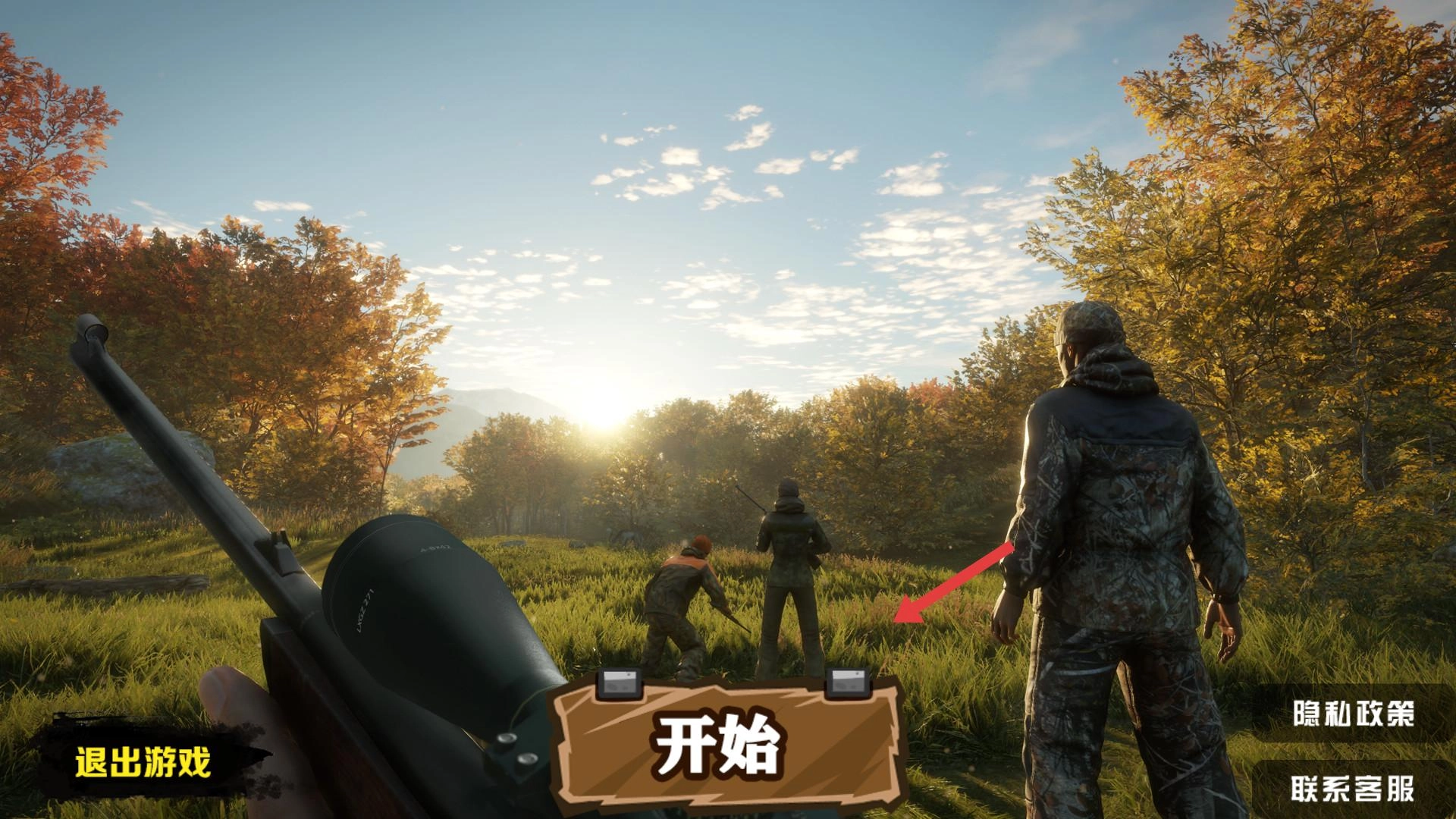 进入游戏后,会看到包含开始、退出游戏等选项的界面,点击“开始”按钮,就能开启狩猎之旅。