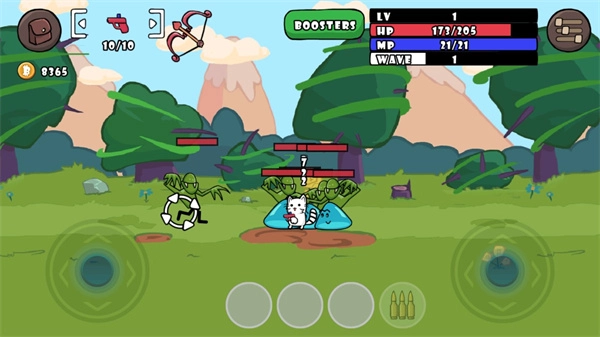 喵星人能够通过升级来提升自身的速度、防御、攻击、闪避等各项属性。