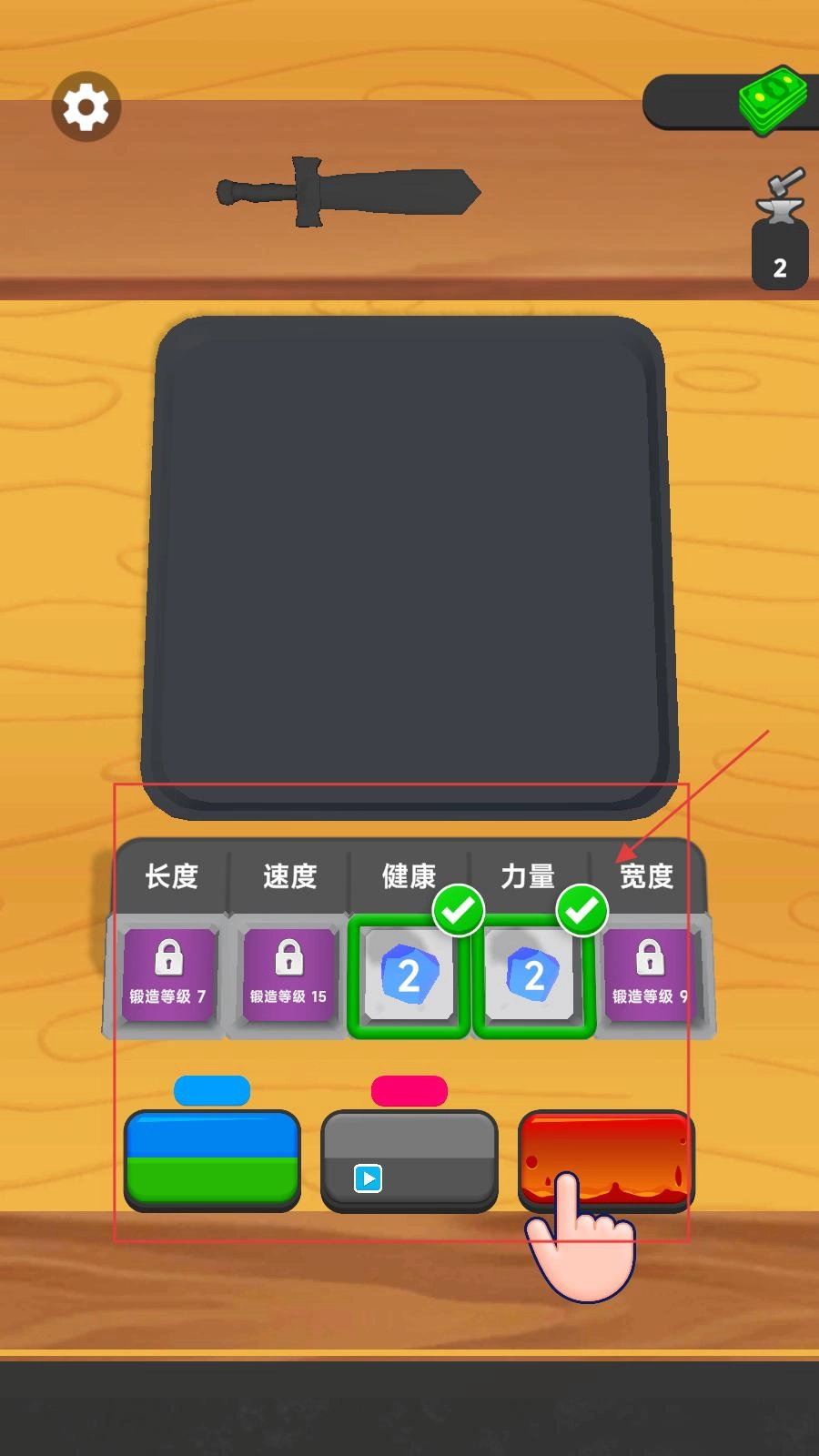 通关之后,你可以利用收集到的资源,在锻造界面里升级宝剑的长度、速度、生命值、力量、宽度等各项属性,进而解锁新的功能,去挑战新的关卡。