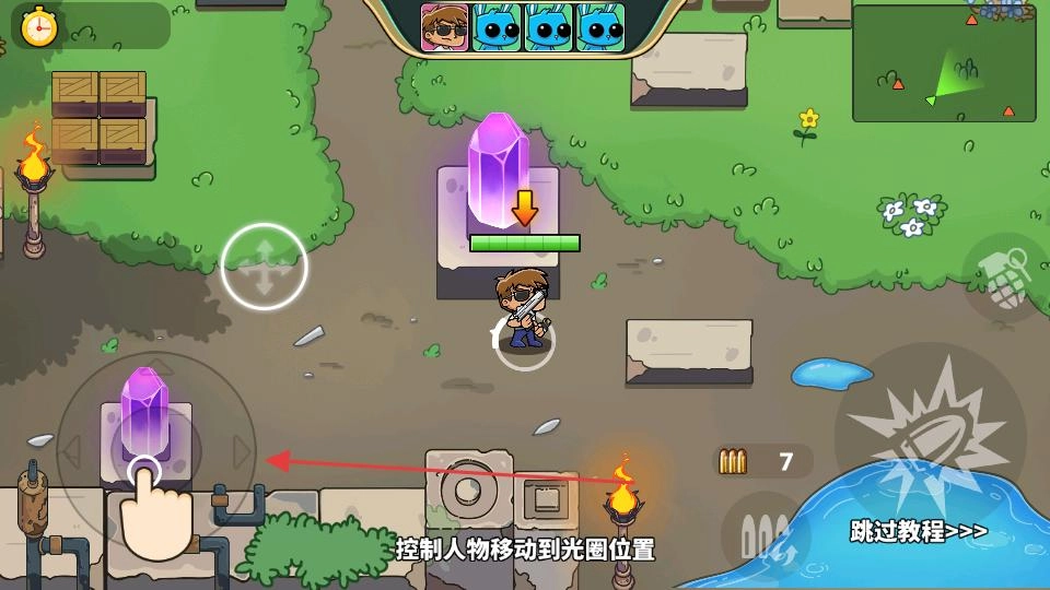 进入战斗场景后,按照指引操作:用虚拟摇杆控制角色移动,把角色引导至光圈所在位置,以此完成教程任务。等熟悉了基本操作,就能参与战斗、挑战关卡了。