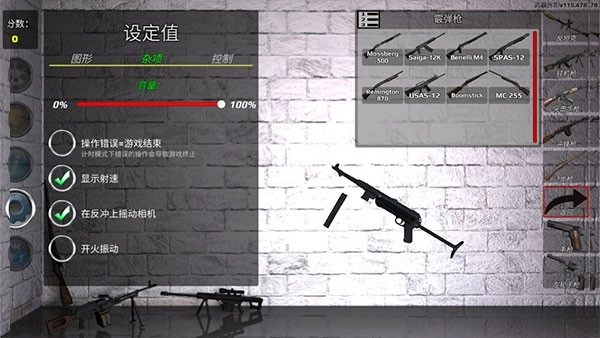 1、进到游戏后,玩家可以通过左侧的控制面板对枪支进行设定。