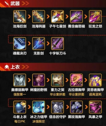 u200c奥德丽蛟龙胸甲u200c与u200c灵思者火龙胸甲u200c:两者都能提供7%的伤害提升,是上衣部位的首选。