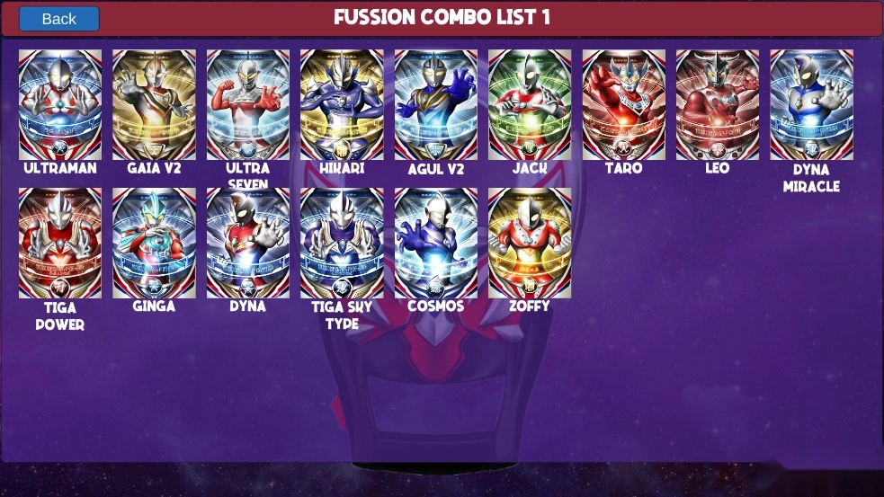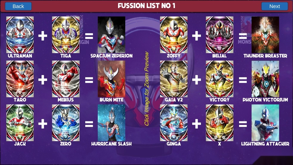可以看到有很多页的融合组合,玩家可以根据自己的喜好来融合出想要的奥特曼