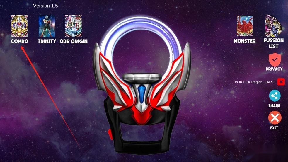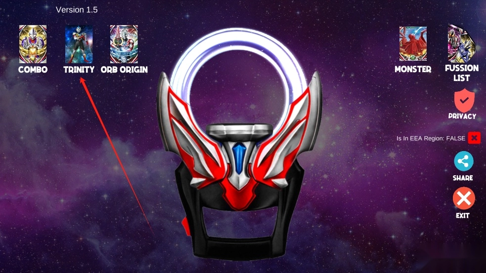 1、打开欧布圆环模拟器中文版,点击屏幕中间的变身器;