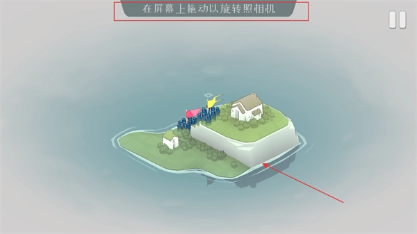3、在游戏场景里拖动屏幕,就能旋转相机视角,方便查看岛屿各个区域的地形,为后续的防御部署做好准备。