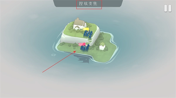 4、捏放屏幕即可调节视角的远近,实现画面的拉近或拉远,这样既能仔细查看防御区域的细节之处,也能清晰把握整个岛屿的全局布局。