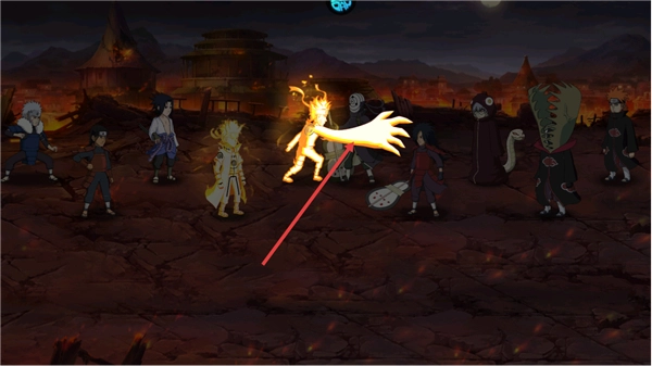2、操控已部署的忍者如鸣人,释放技能攻击敌方目标,推进战斗。