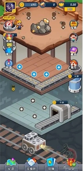 游戏中引入管道采矿机制,玩家只需一键操作就能添加各类管道设施,借助管道系统可便捷地完成矿石的运输与加工流程,进而获取金币奖励。