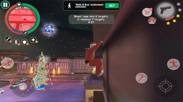 《犯罪的桑塔》这款游戏的故事背景设定在一座充满圣诞氛围的虚拟城市里。玩家将化身圣诞老人——但这次是“邪恶版”的!你可以自由选择游戏方式:既能在城市地图中尽情探索各个场景,也能对不同角色展开趣味整蛊,体验多样化的游戏乐趣。