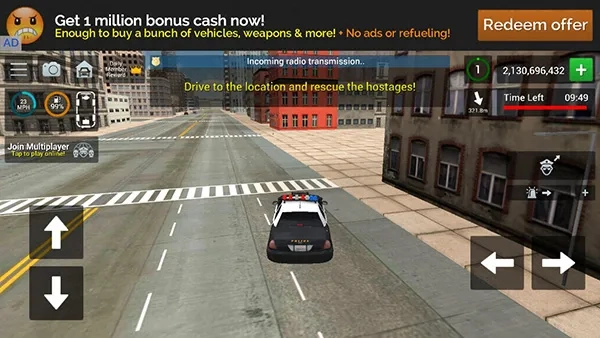 5、这就是我们需要操控的警车,左侧可调节速度,右侧可掌控方向;