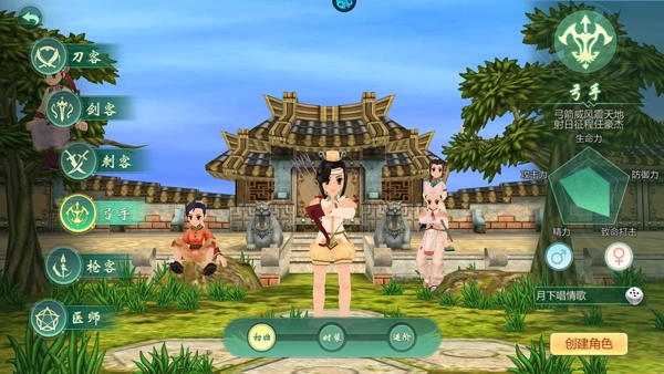 1、刀客,剑士,枪客,医师,弓手、刺客六大经典职业;