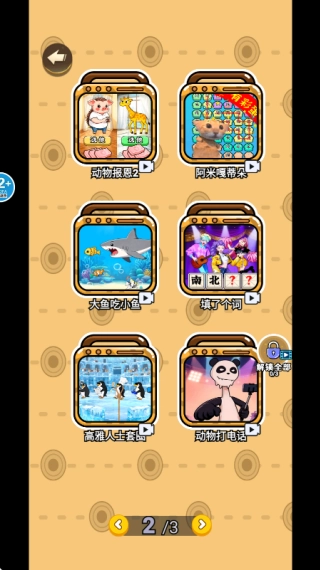 2. 如下图所示,包含三页内容的主题关卡可供选择挑战。玩家能够自由挑选,开启充满趣味的脑洞闯关旅程。