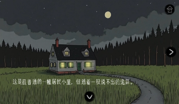 3、点击箭头切换视角,你下车换个地方走走,来到一座孤零零的小房子前。