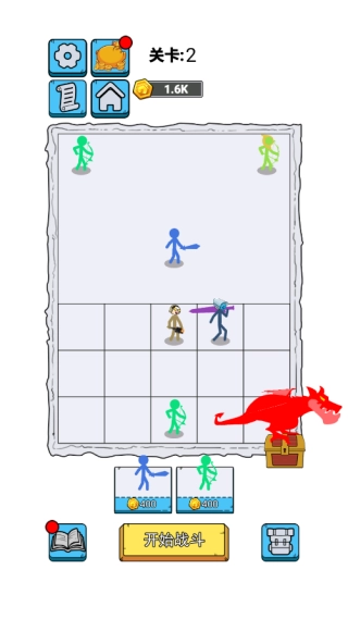 1、在关卡开启前选购新的火柴人兵种,熟悉各兵种的属性特点以及适配的部署位置,以此为后续的战场布局筑牢前期基础。