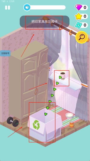 2、需对物件进行收纳整理,界面顶部会展示当前的资金数额与任务进展情况。